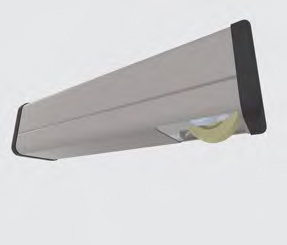 Unsere Laufschienen sind bei 4 Elementen nur 21,5 cm breit (Komfortlaufschiene: 28 cm). Selbst für größere Überdachungslängen reichen nur 4 Spuren aus. Extrem breite Schienen sind bei uns nicht nötig. Bei einigen Überdachungstypen kann an einer Seite auf die Bodenschienen verzichtet werden.