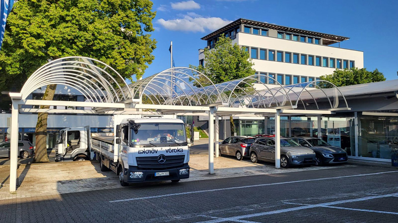 The cost of a roof depends on factors such as length, width, height, and the desired features. For a customized quote, you can send us an inquiry with the rough dimensions of the area to be covered and a photo of the on-site conditions – or contact us directly.