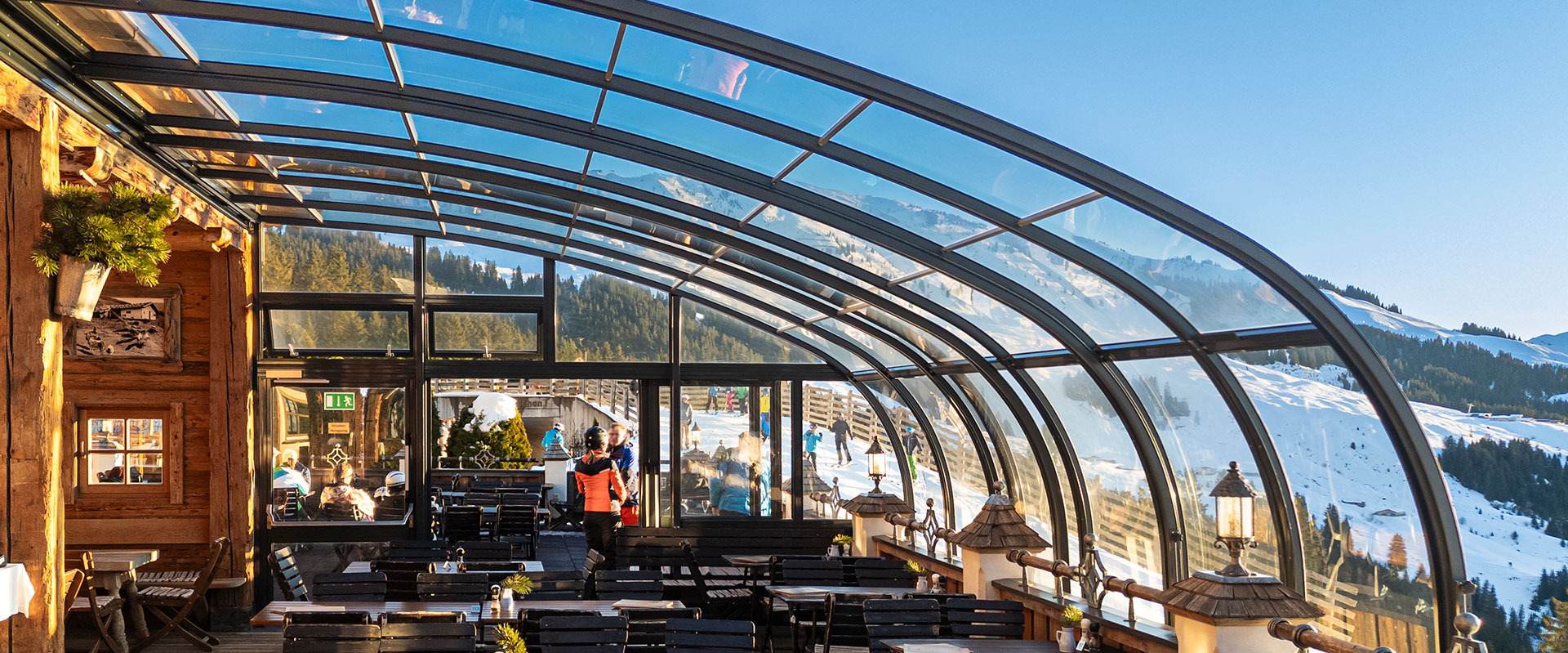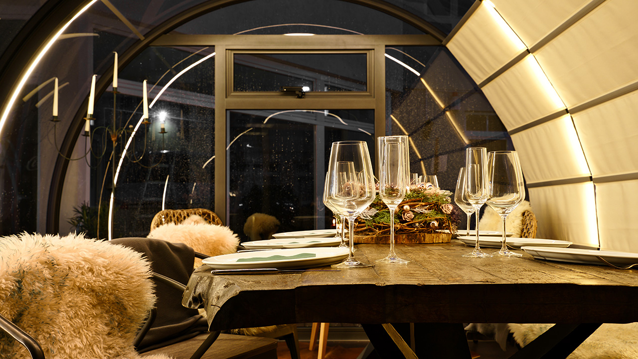 Do you need roofs for hotel pools, wellness facilities, alpine restaurants, terraces, or would you like to create a special atmosphere with glass domes and igloos? We would be happy to develop customized solutions to complement and expand your proven overall concept.