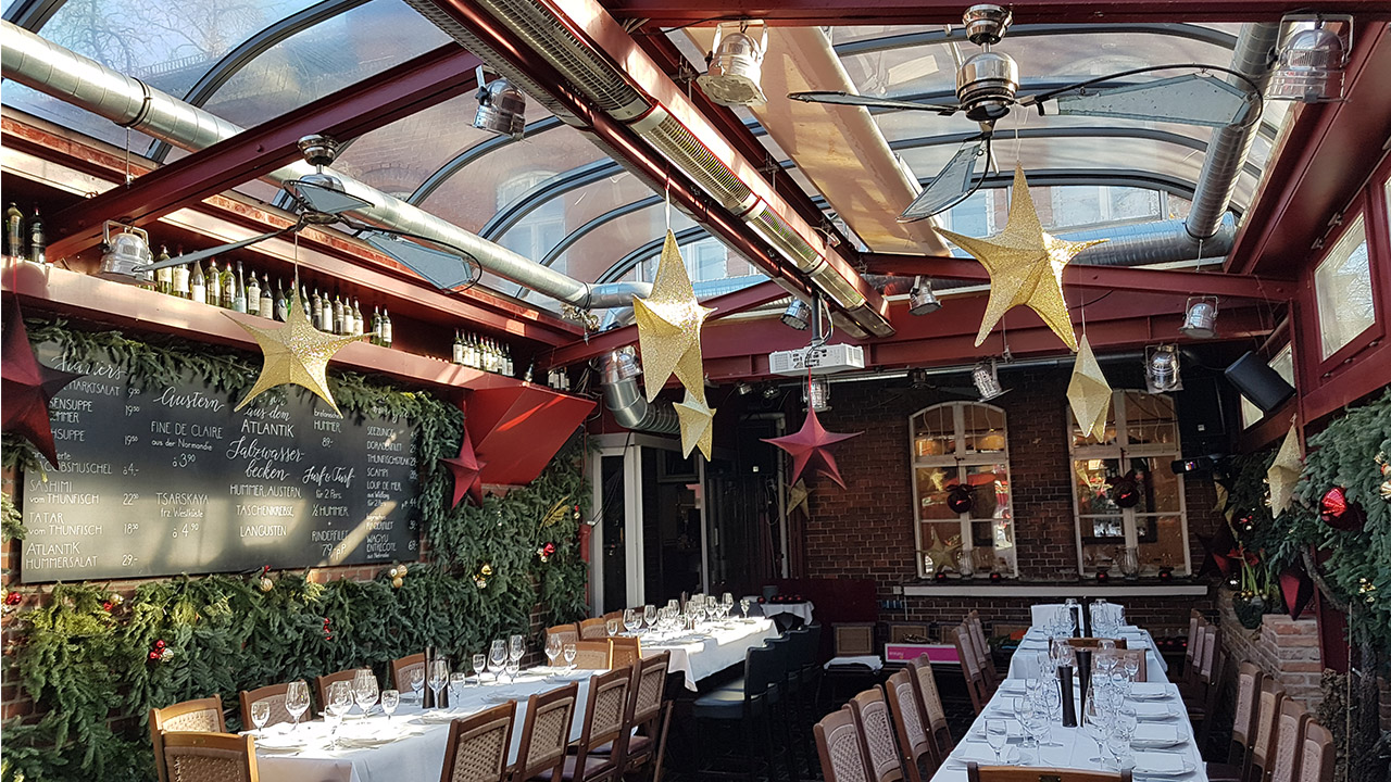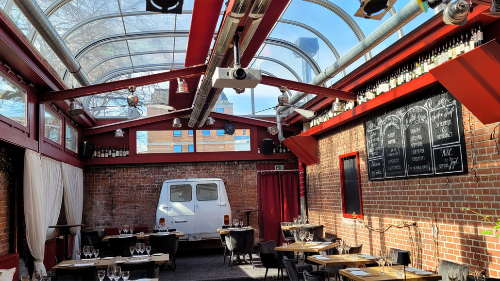 The dining areais expanded regardless of the weather. Catering can be provided in rain, wind, and sunshine. The sliding roof elements allow for quick response to changing weather conditions.