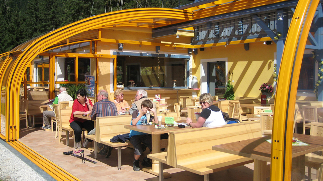 There are many reasons for expansion. This can be achieved with our flexible roofing models – freestanding, attached to the house wall, or as a courtyard roof. All of our models can be opened continuously, allowing the dining area to be adapted to the weather.