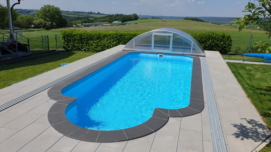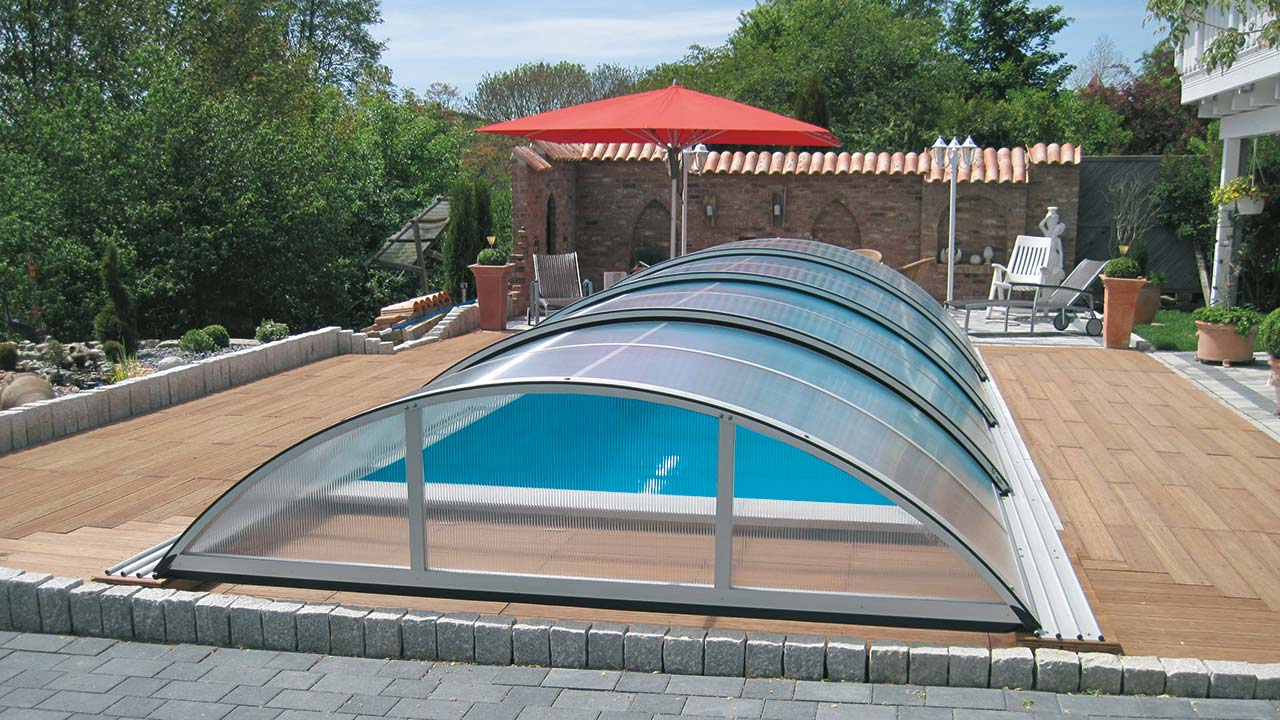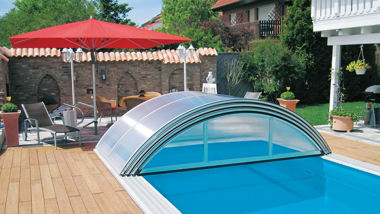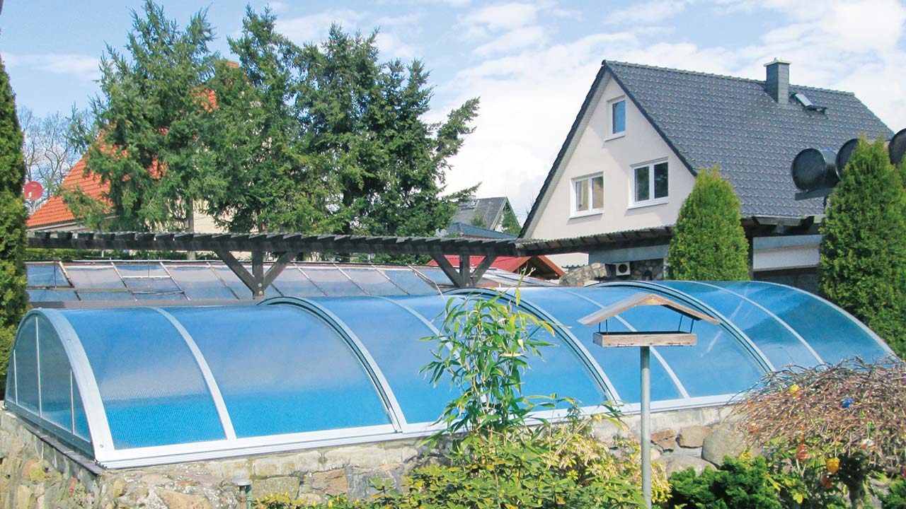 Maximum comfort is guaranteed. All components are extremely stable and easy to move. The roof surface is constructed exclusively with twin-wall panels, while the end wall can be made of clear glass or a tarpaulin. As with every VÖROKA pool cover, the profiles are available in all RAL colors. Significantly extend your swimming season.