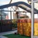 The roof is lockable. The roof elements are anchored to the ground and protected from strong winds by a wind guard. The roof panels are completely shatterproof.