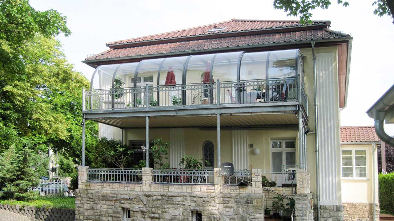 - Attachment of the roof using rails (to the house wall) or angle frames (to the ground)
